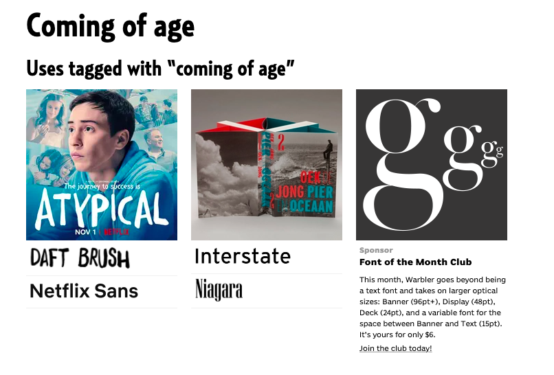 https://fontsinuse.com/tags/8635/coming-of-age